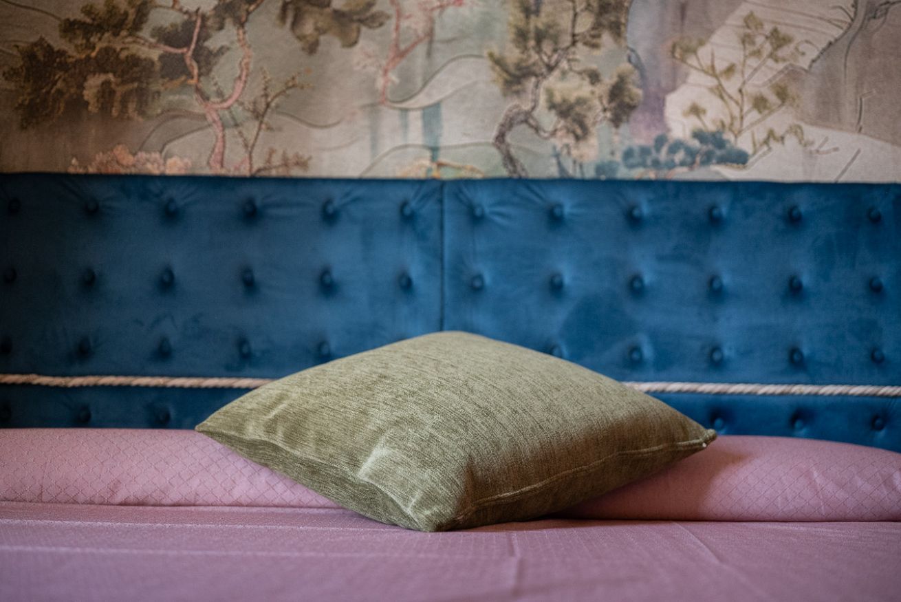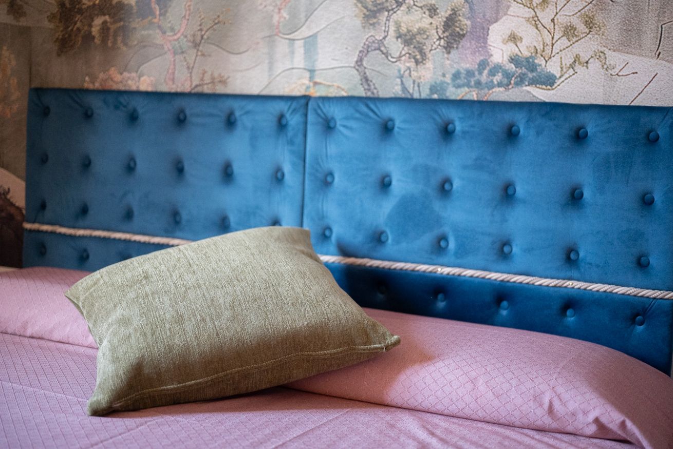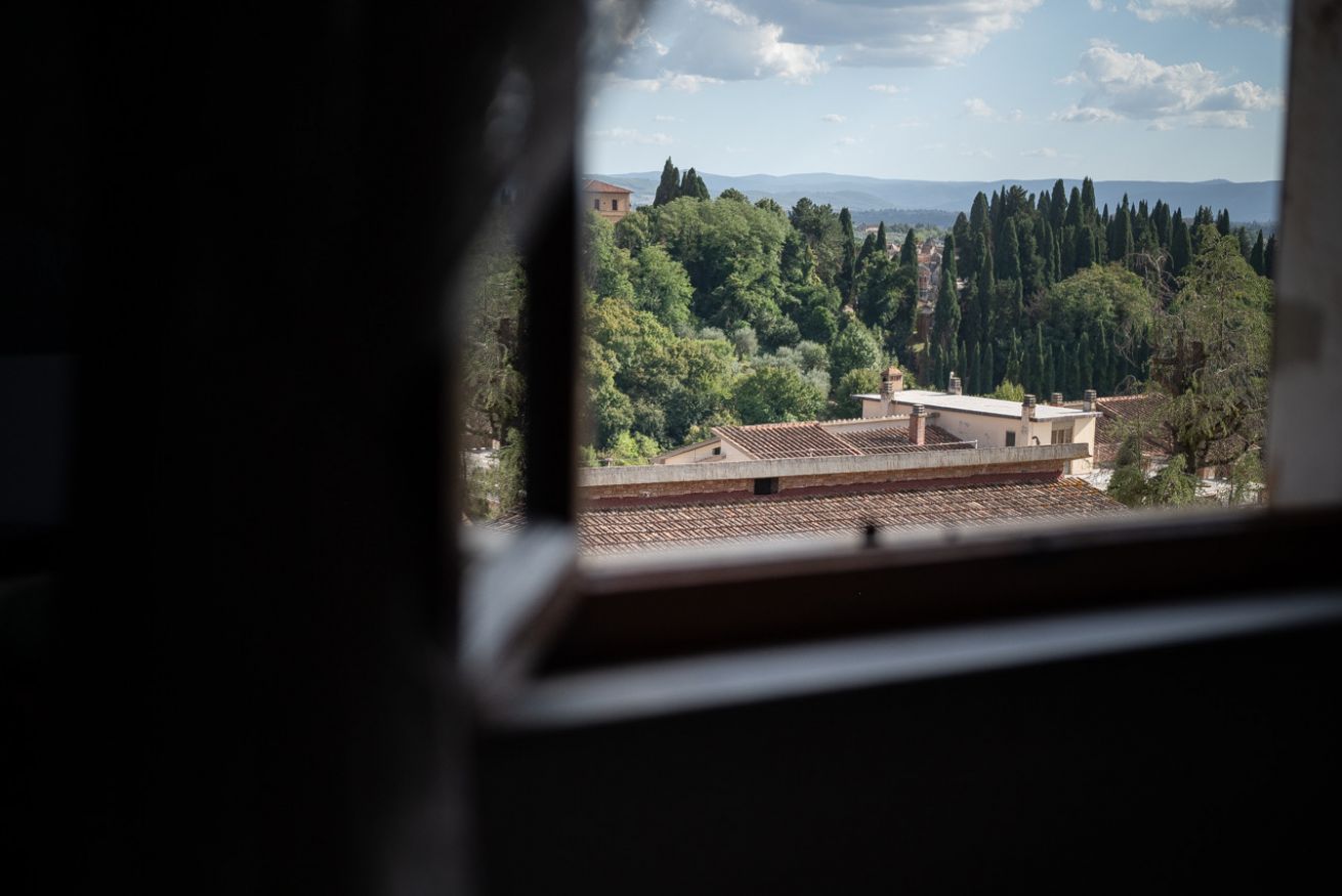 Camera 2: letto matrimoniale, appendiabiti aperto in legno e vista sui monumenti.