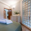 Proseguendo, si accede alla camera da letto, un rifugio intimo e accogliente, arredato con mobili in stile toscano che riflettono l'arte e la tradizione locale. L'ampio guardaroba offre tutto lo spazio necessario per riporre comodamente i tuoi effetti personali, rendendo ogni soggiorno confortevole e senza stress.